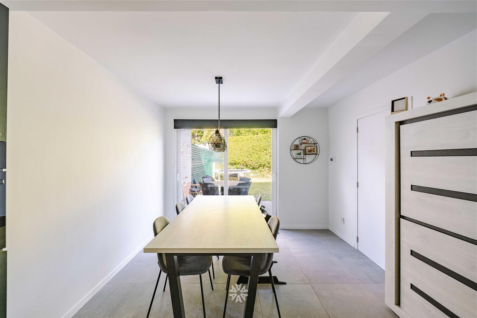 keuken. De keuken is volledig voorzien van ingebouwde toestellen. De eetkamer grenst