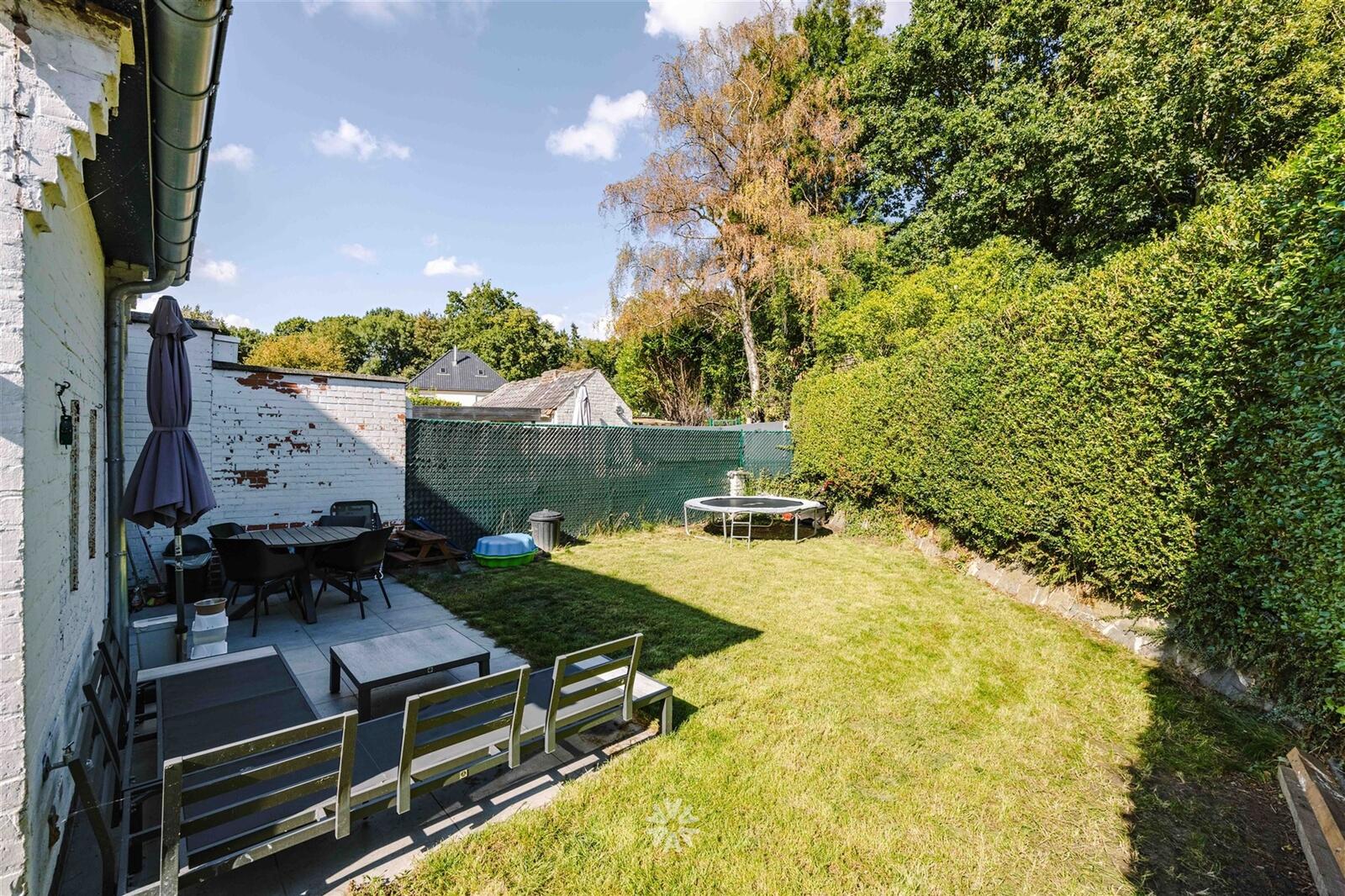 aan een praktische berging en geeft uit op de gezellige stadstuin met terras.